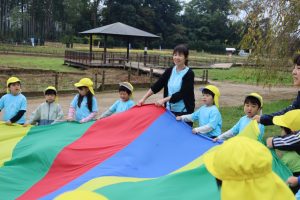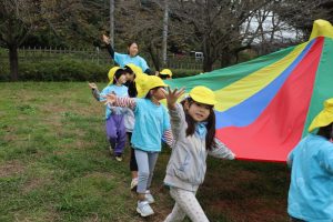 運動会でも親子競技で行ったパラバルーン。大空の下で楽しみました。