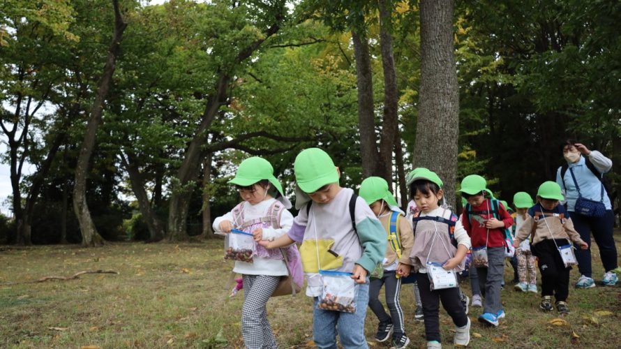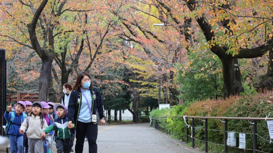 今日はぶどう組さんが小平中央公園に遠足へ行きました。 着くと早速遊具で遊びました。 普段とは違う遊具に大喜びです。 自然探しもしました。 不思議な形の木に興味津々。木の穴にはどんぐりが沢山入っていました。誰が入れたのでしょう?物語が膨らみますね。 公園には紅葉したての自然がたくさんあり、とても気持ちが良かったです。 もちろん、遠足と言ったらお弁当! 沢山の木の下で美味しくいただきました。 秋を感じ […]